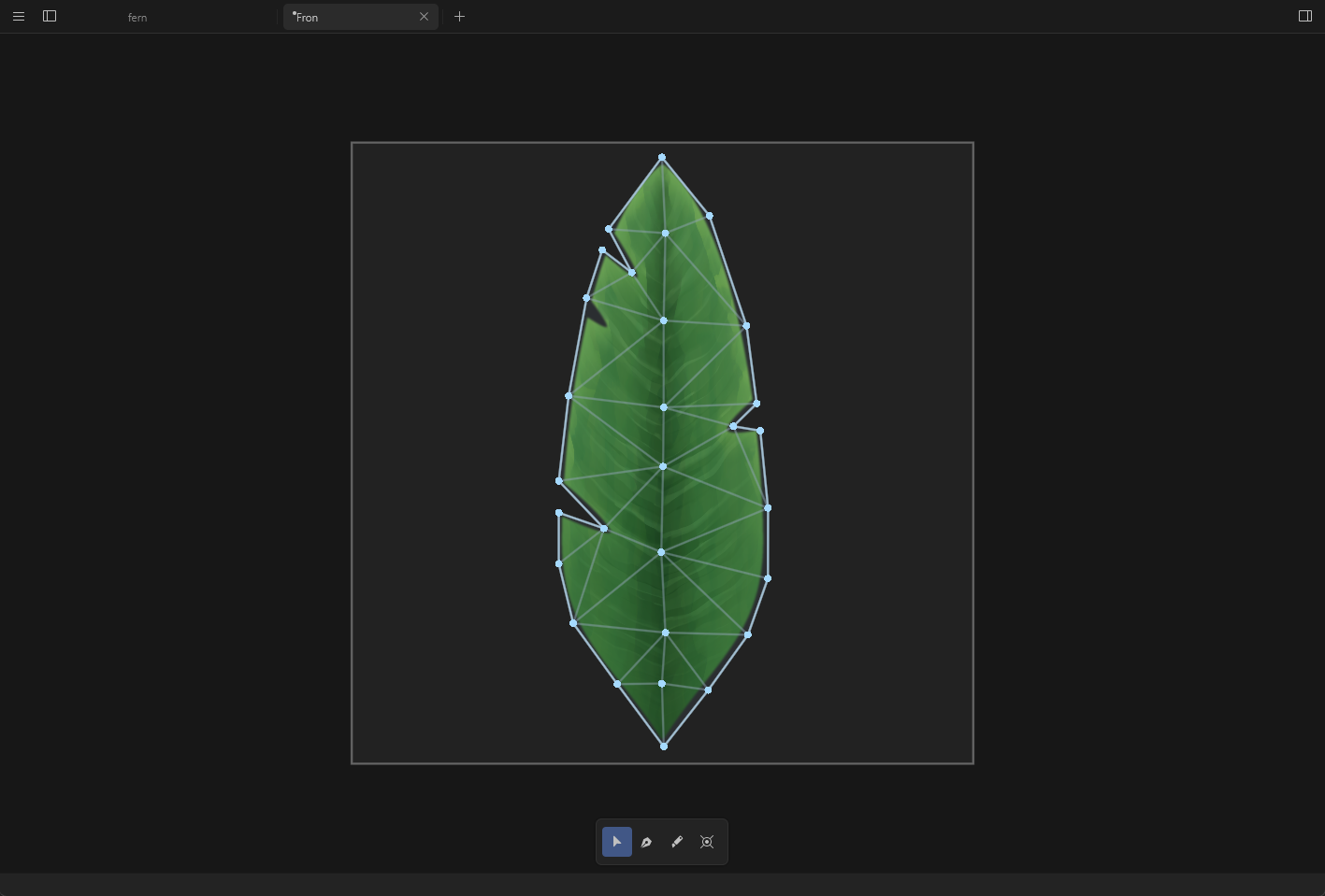 Build cutout cards for your textures by tracing edges, placing vertices, and defining connections. They’re automatically formed into a triangulated mesh, with support for holes and a custom pivot point.